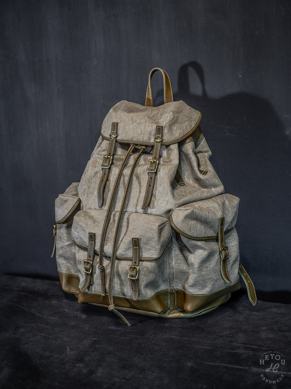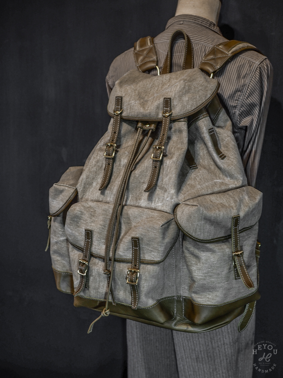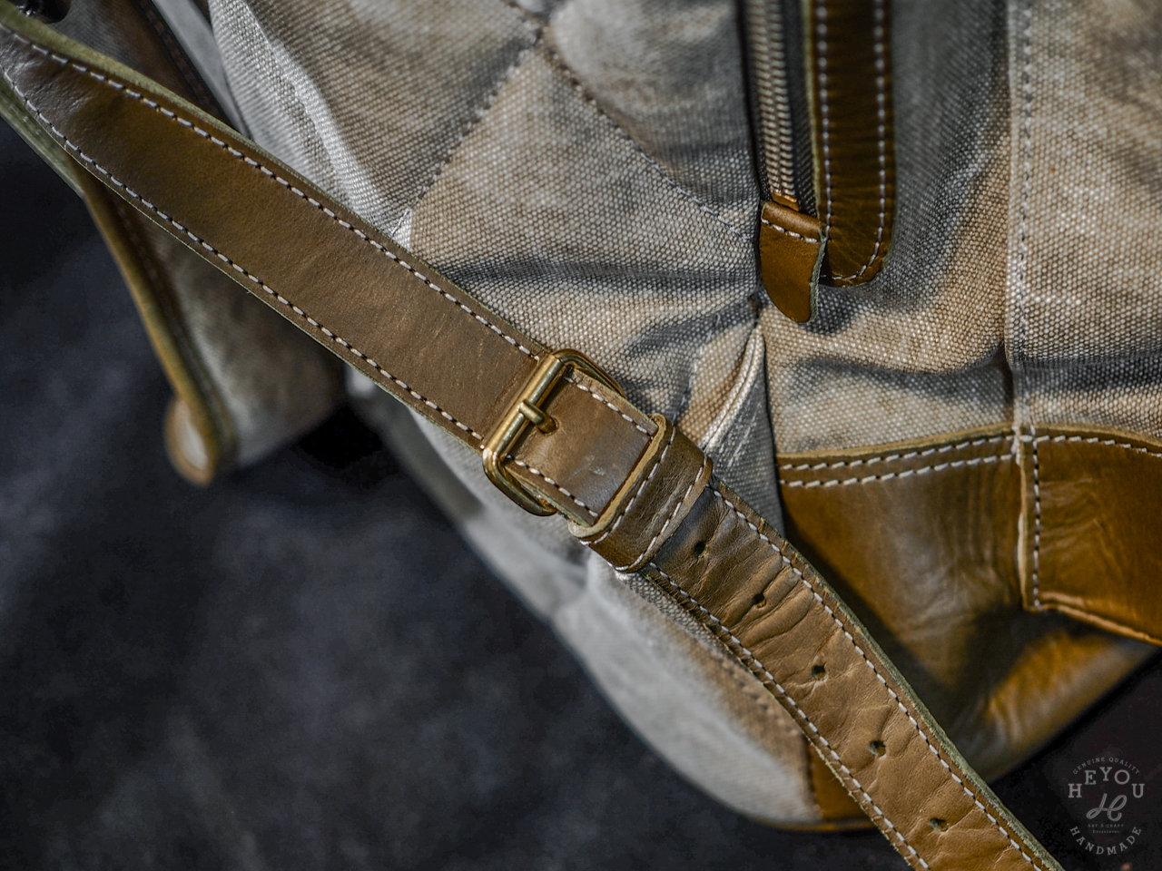 ✵ 材料 – 義大利進口植鞣牛革 / 厚磅水洗帆布布料